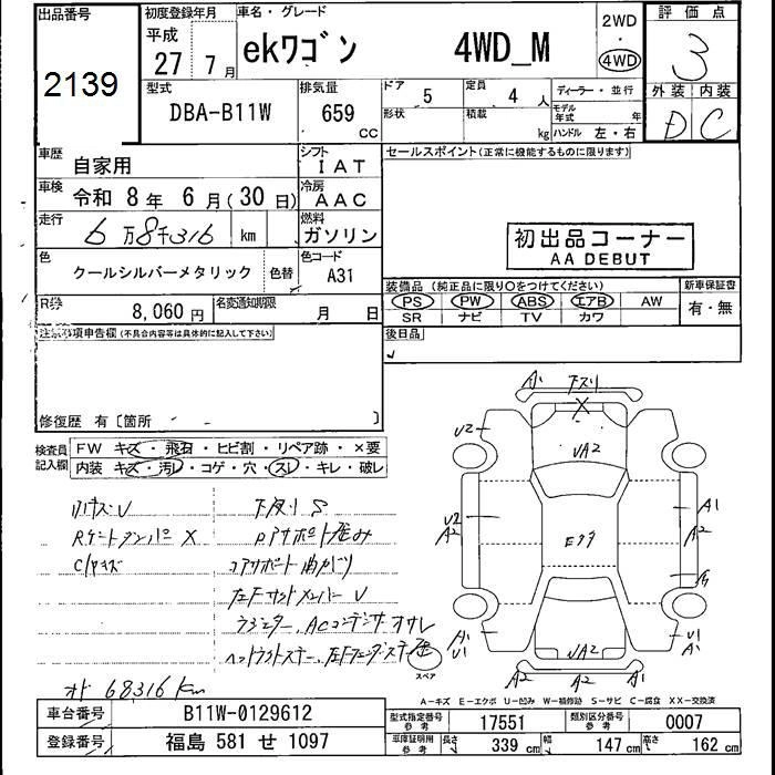 MITSUBISHI EK WAGON 2015 г., лот № 2139