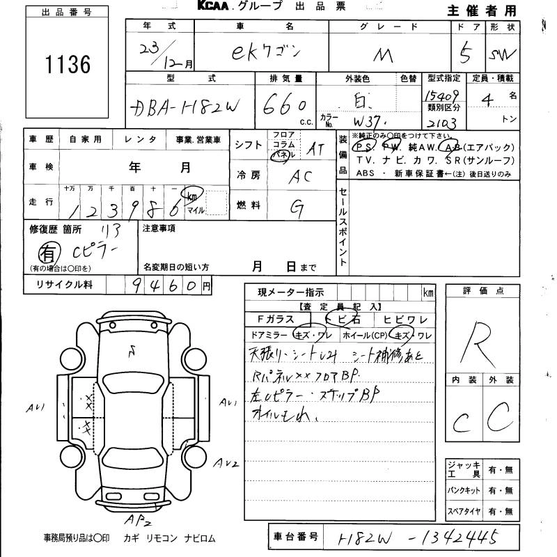 MITSUBISHI EK WAGON 2011 г., лот № 1136