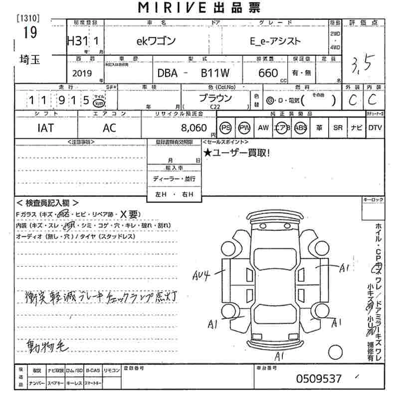 MITSUBISHI EK WAGON 2019 г., лот № 19