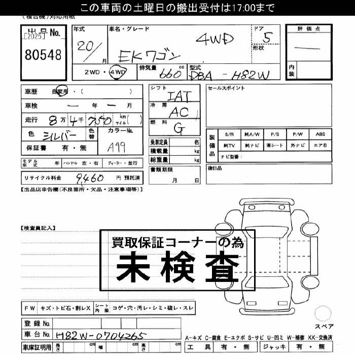 MITSUBISHI EK WAGON 2008 г., лот № 80548