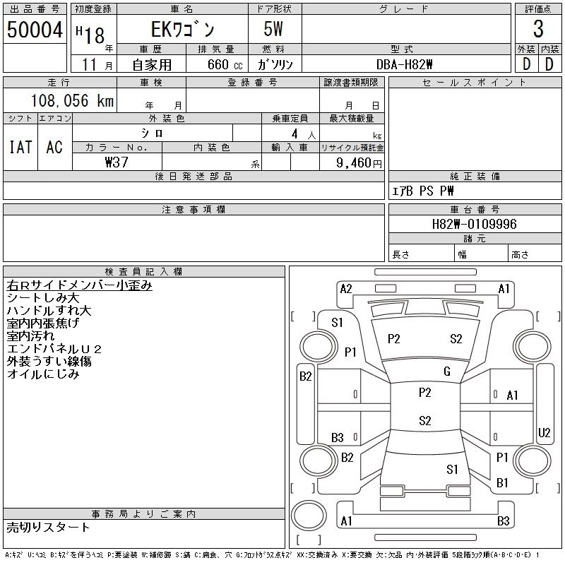 MITSUBISHI EK WAGON 2006 г., лот № 50004