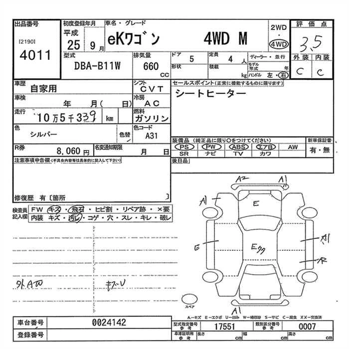 MITSUBISHI EK WAGON 2013 г., лот № 4011