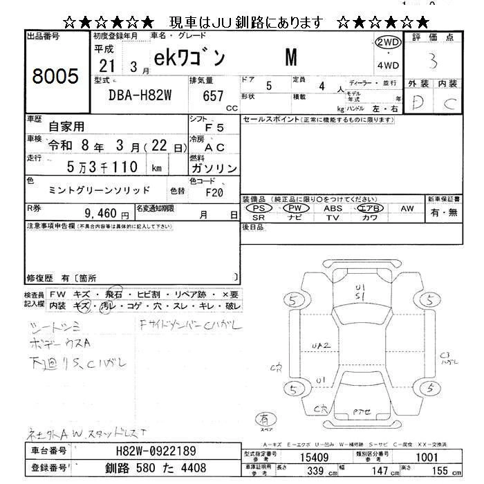 MITSUBISHI EK WAGON 2009 г., лот № 8005