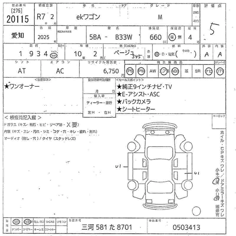 Статус не продан Лот 20115 Аукцион MIRIVE Aichi Дата аукциона 23.01.2026