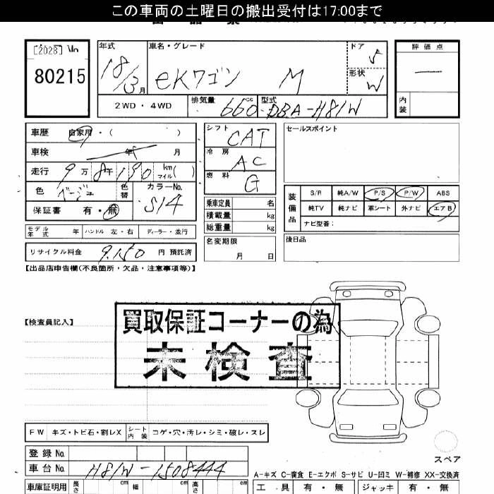 MITSUBISHI EK WAGON 2006 г., лот № 80215