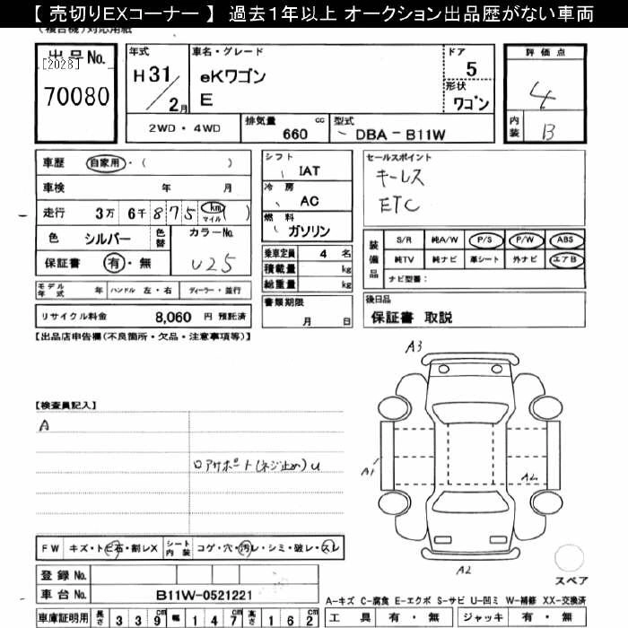 MITSUBISHI EK WAGON 2019 г., лот № 70080