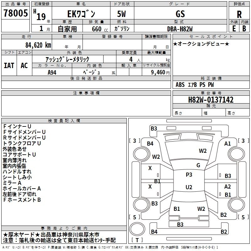 MITSUBISHI EK WAGON 2007 г., лот № 78005
