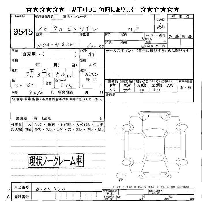 Статус не продан Лот 9545 Аукцион JU Hokkaido Дата аукциона 23.01.2026