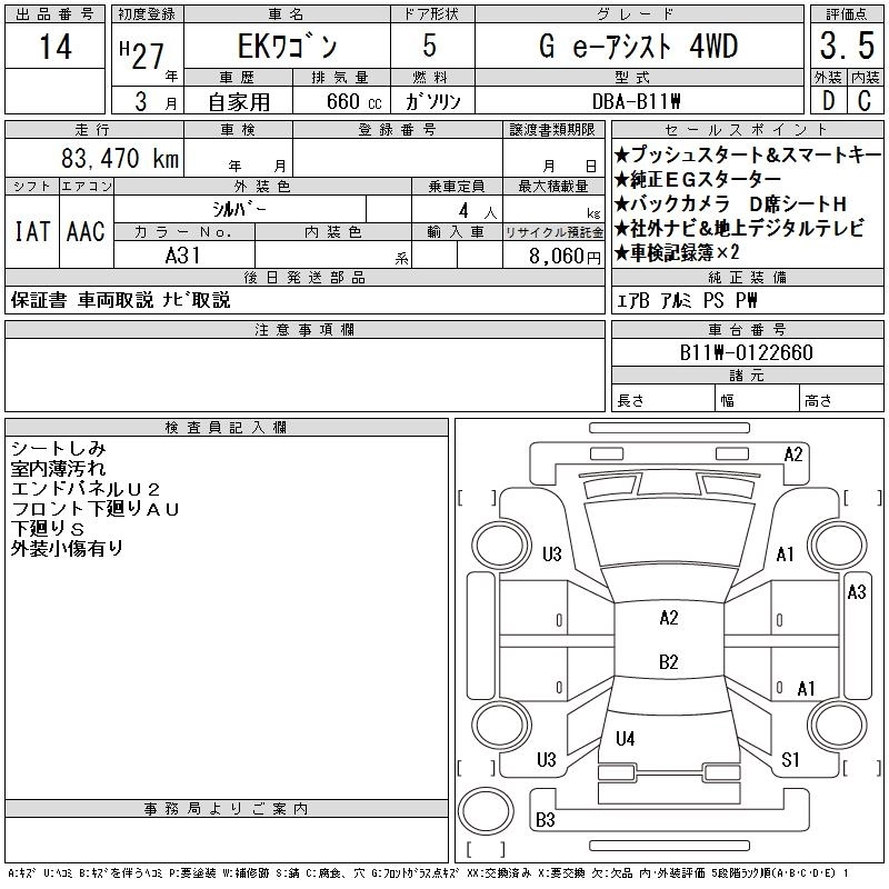 Год выпуска2015 Пробег 83 000 км КузовB11W КомплектацияG E- ASSIST 4WD