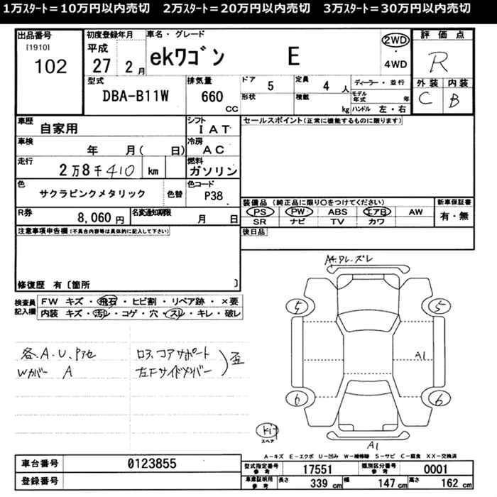 Стартовая цена авто на аукционе 20 000 ¥