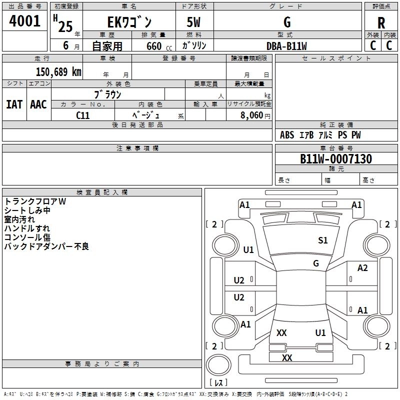 MITSUBISHI EK WAGON 2013 г., лот № 4001