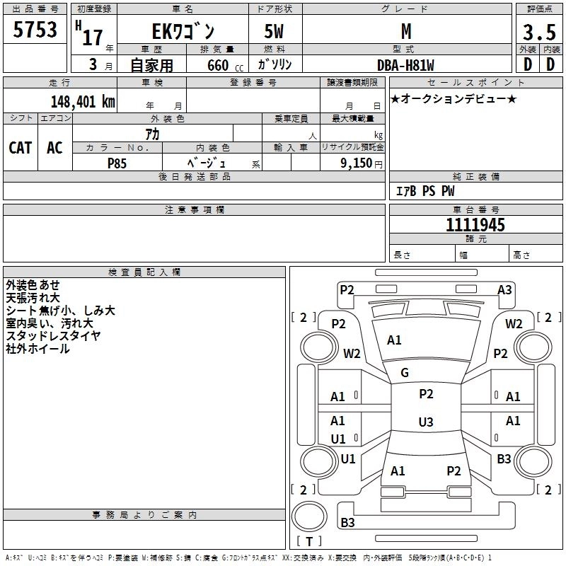 Год выпуска2005 Пробег 148 000 км КузовH81W КомплектацияM