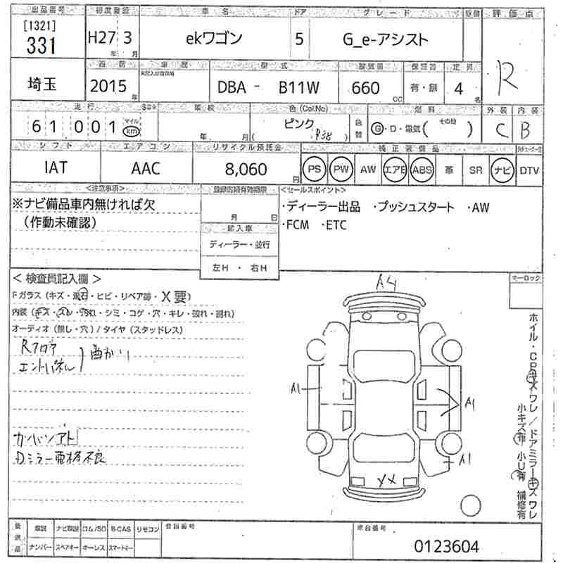 MITSUBISHI EK WAGON 2015 г., лот № 331
