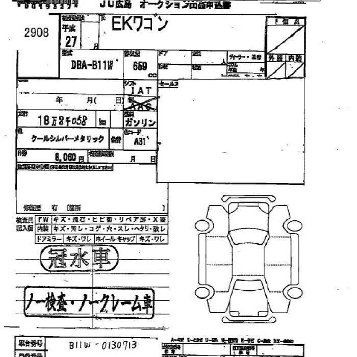 MITSUBISHI EK WAGON 2015 г., лот № 2908