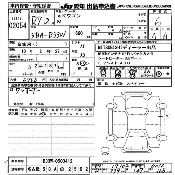 Статус выставлен на аукцион Лот 2054 Аукцион JU Aichi Дата аукциона 12.03.2026