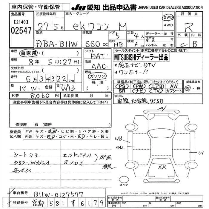 MITSUBISHI EK WAGON 2015 г., лот № 2547