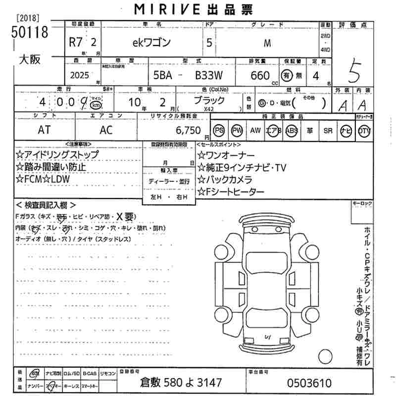Статус выставлен на аукцион Лот 50118 Аукцион MIRIVE Osaka Дата аукциона 12.03.2026