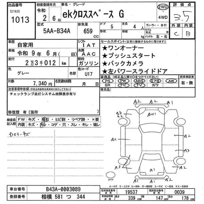 MITSUBISHI EK X SPACE 2020 г., лот № 1013