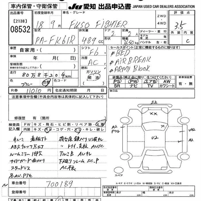 Год выпуска2006 Пробег 808 000 км КузовFK61R Комплектация3.65t