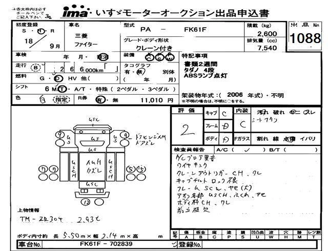 Год выпуска2006 Пробег 266 000 км КузовFK61F Комплектация CRANE ATTACHING