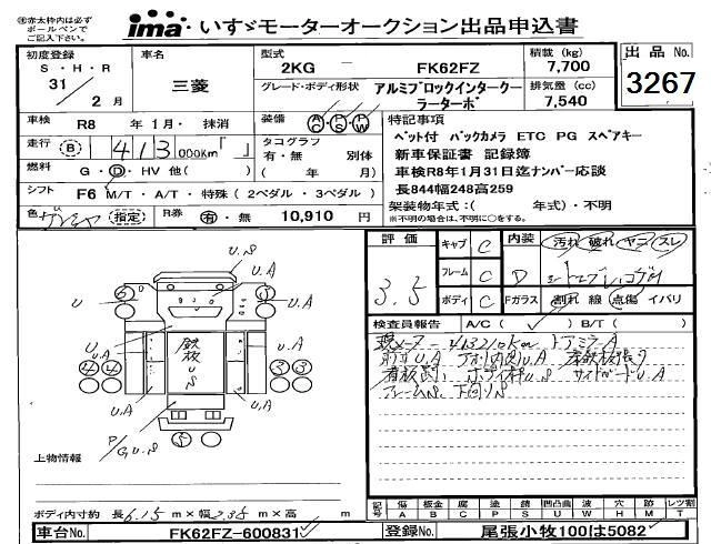 Статус выставлен на аукцион Лот 3267 Аукцион Isuzu Kobe Дата аукциона 12.12.2025