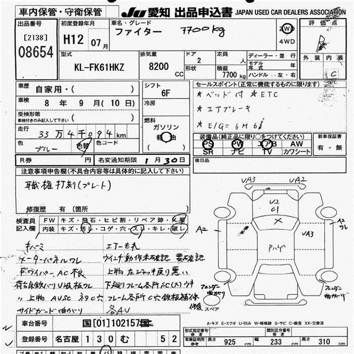 Год выпуска2000 Пробег 334 000 км КузовFK61HKZ Комплектация7.7t