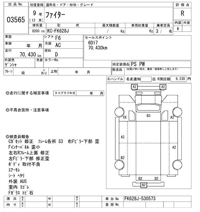 Статус выставлен на аукцион Лот 3565 Аукцион ARAI Oyama VT Дата аукциона 20.12.2025