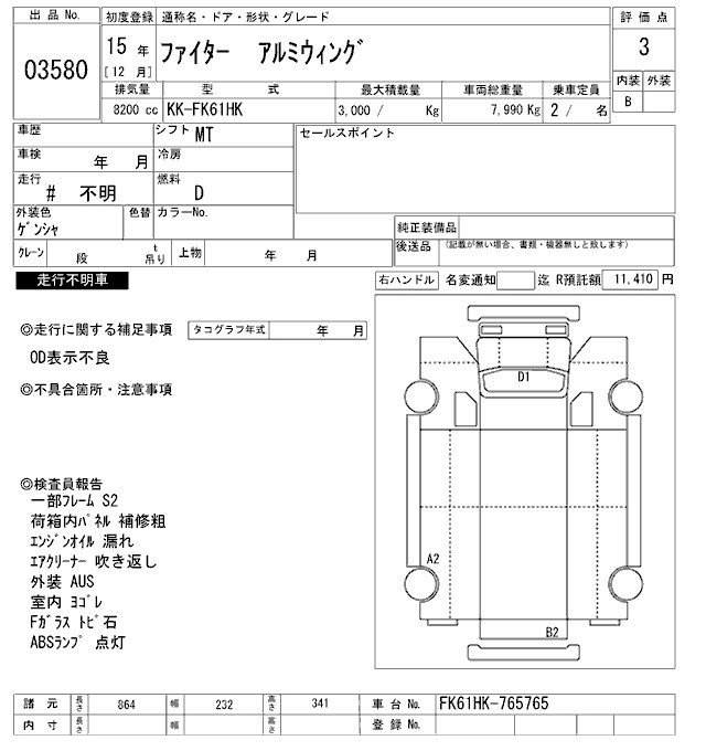 Статус выставлен на аукцион Лот 3580 Аукцион ARAI Oyama VT Дата аукциона 20.12.2025