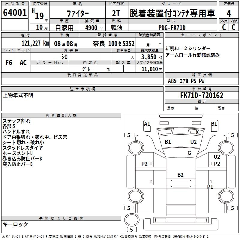121 000 км КузовFK71D Комплектация DODGE .KSOUCHI EXIST CONTAINER HEAD SI