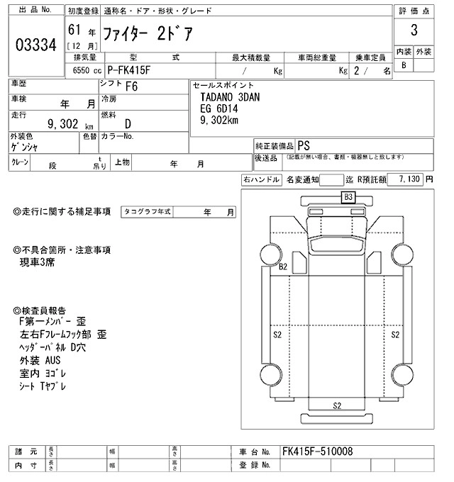 Год выпуска1986 Пробег 9 000 км КузовFK415F Комплектация COMMON. CRANE 3 -STEP