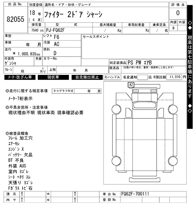 Год выпуска2006 Пробег 1 001 000 км КузовFQ62F Комплектация CHASSIS