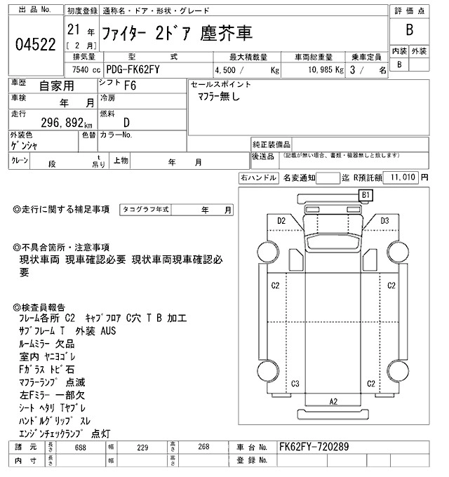 Год выпуска2009 Пробег 297 000 км КузовFK62FY Комплектация GARBAGE