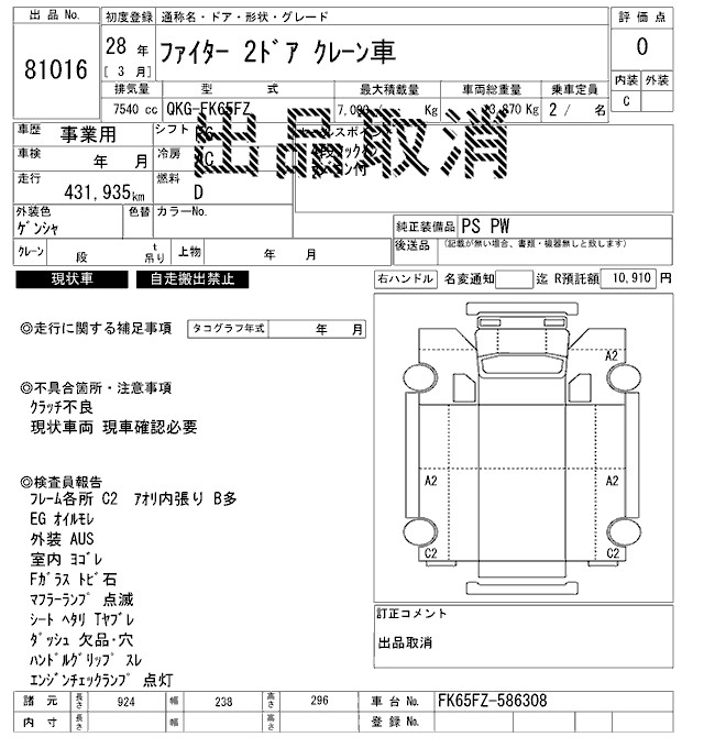 MITSUBISHI FUSO FIGHTER 2016 г., лот № 81016