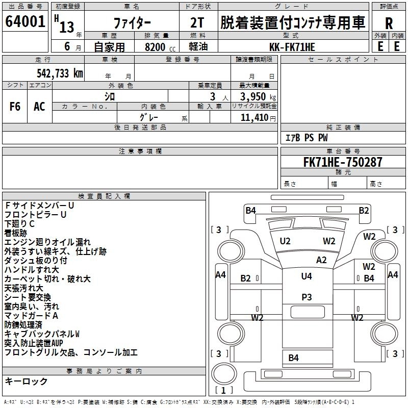 543 000 км КузовFK71HE Комплектация DODGE .KSOUCHI EXIST CONTAINER HEAD