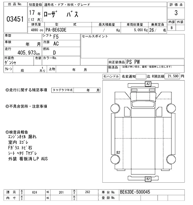 Год выпуска2005 Пробег 406 000 км КузовBE63DE Комплектация BUS