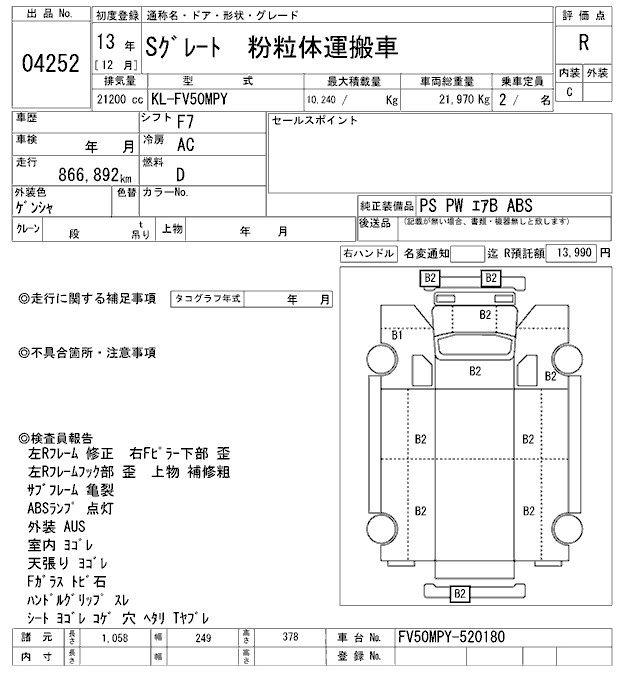 Год выпуска2001 Пробег 867 000 км КузовFV50MPY Комплектация JET TANKER