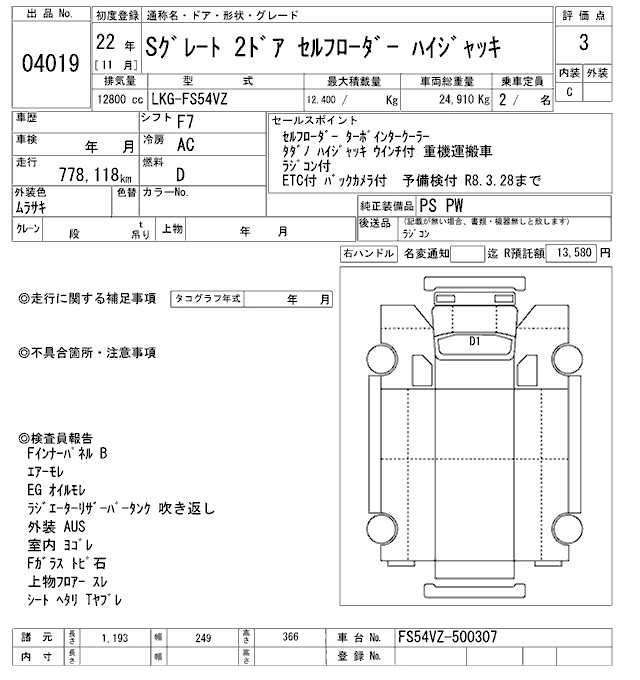 Статус выставлен на аукцион Лот 4019 Аукцион ARAI Oyama VT Дата аукциона 24.01.2026