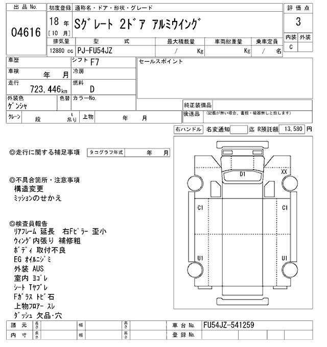 Год выпуска2006 Пробег 723 000 км КузовFU54JZ Комплектация ALUMINIUM WING