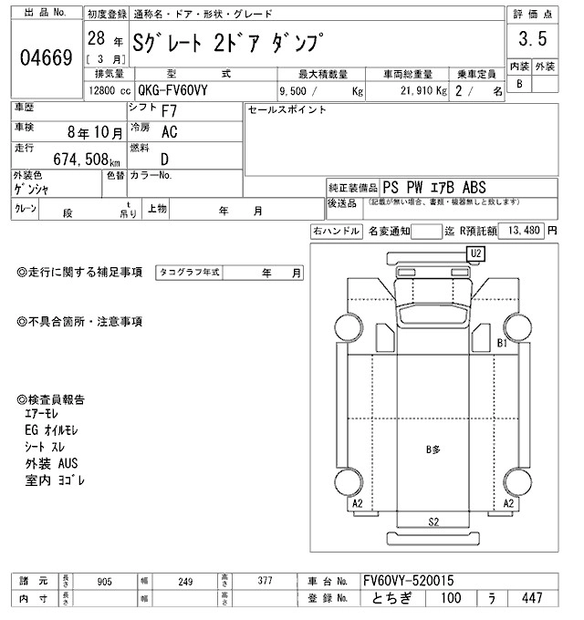 Год выпуска2016 Пробег 675 000 км КузовFV60VY Комплектация DUMP