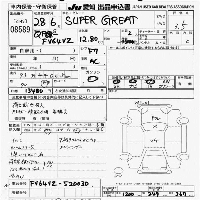 Статус выставлен на аукцион Лот 8589 Аукцион JU Aichi Дата аукциона 12.03.2026