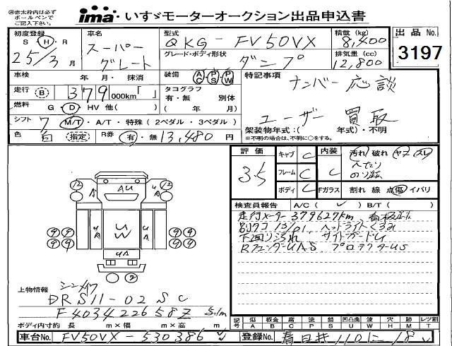 Год выпуска2013 Пробег 379 000 км КузовFV50VX Комплектация DUMP