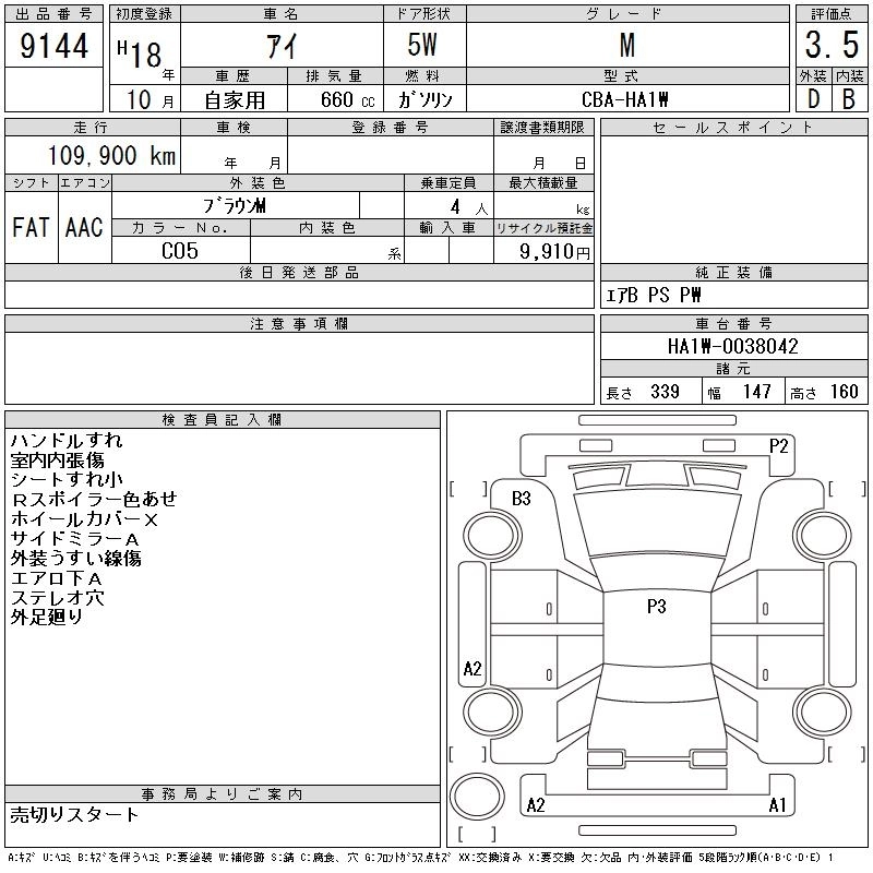 Статус выставлен на аукцион Лот 9144 Аукцион CAA Chubu Дата аукциона 29.10.2025