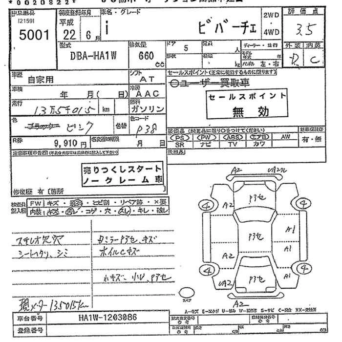 Год выпуска2010 Пробег 135 000 км КузовHA1W Комплектация VIVACE