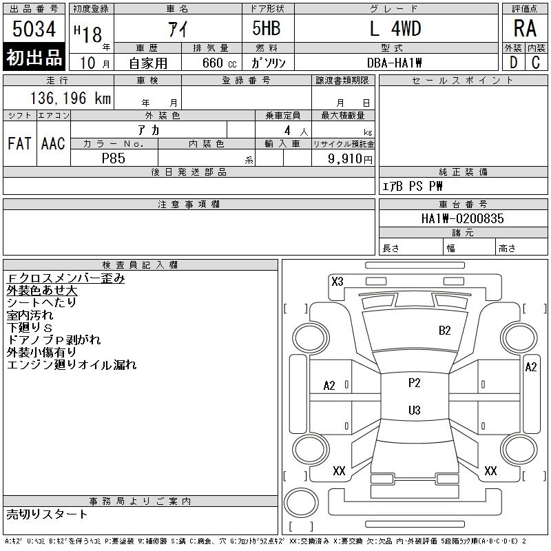 Год выпуска2006 Пробег 136 000 км КузовHA1W КомплектацияL 4WD