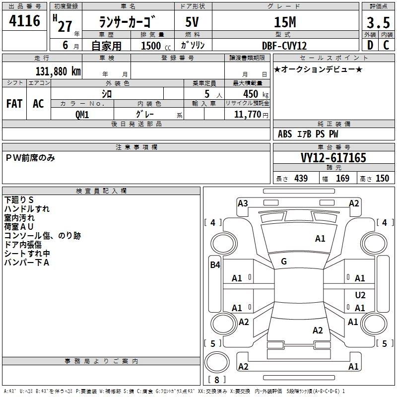 MITSUBISHI LANCER CARGO 2015 г., лот № 4116