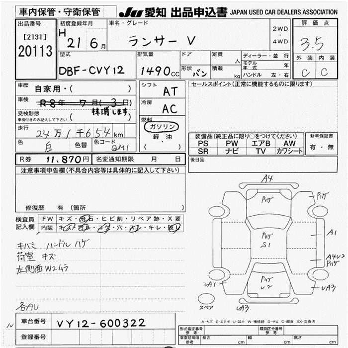 MITSUBISHI LANCER VAN 2009 г., лот № 20113