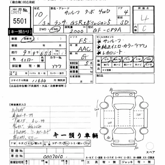 Год выпуска1998 Пробег 99 000 км КузовCP9A Комплектация4WD GSR EVOLUTION 5 TURBO