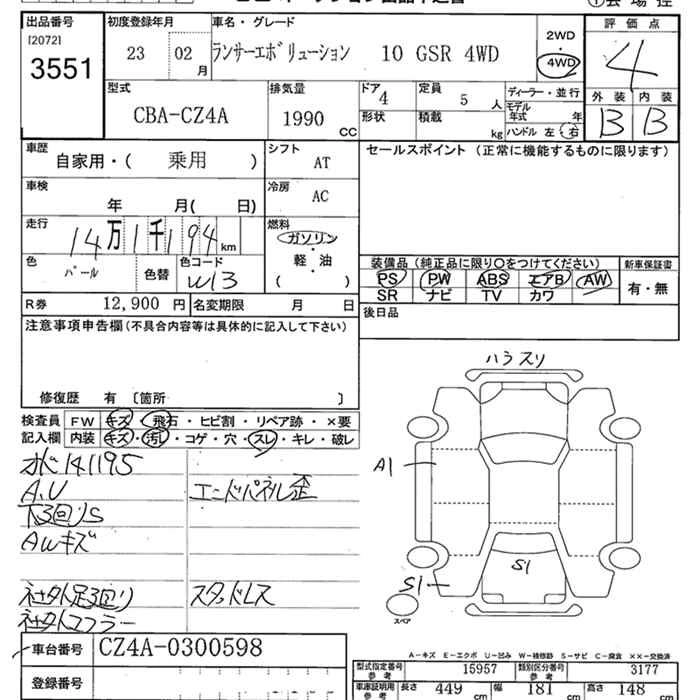 Год выпуска2011 Пробег 141 000 км КузовCZ4A Комплектация4WD EVOLUTION 10 GSR