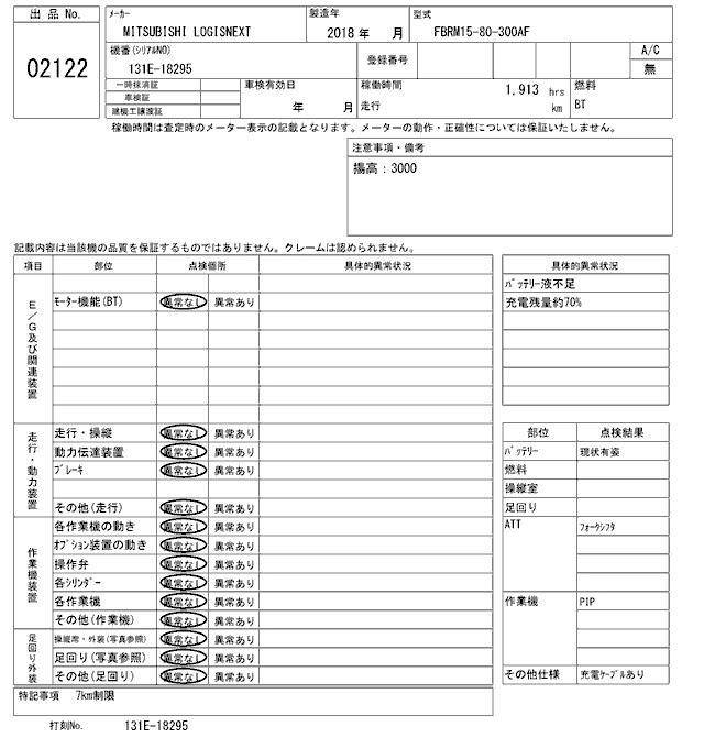 MITSUBISHI LOGISNEXT 2018 г., лот № 2122