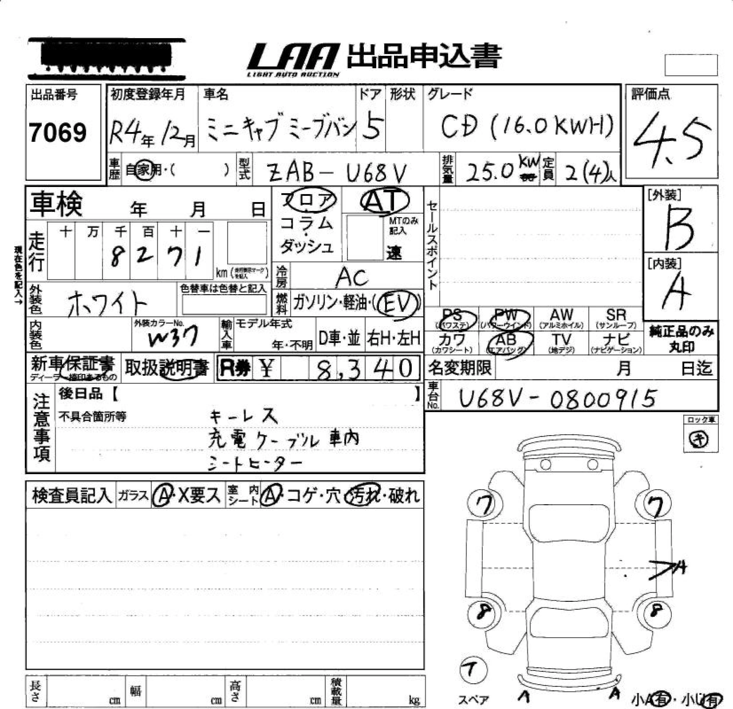 Статус не продан Лот 7069 Аукцион LAA Okayama Дата аукциона 23.01.2026